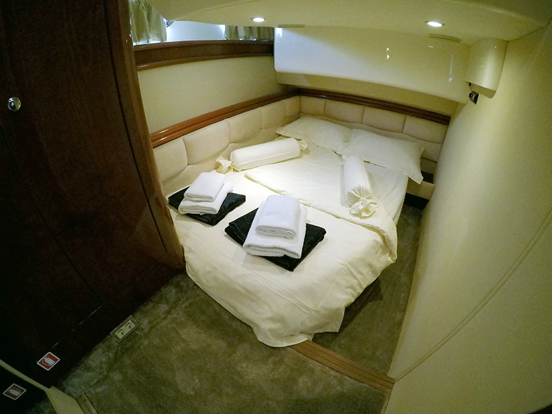 Električno sidreno vitlo , Bimini top , Stol u kokpitu , Jastuci u kokpitu , Tuš u kokpitu (topla voda) , Stepenice za kupanje , Vanbrodski motor , Gumenjak sa vanbrodskim motorom , Flybridge
